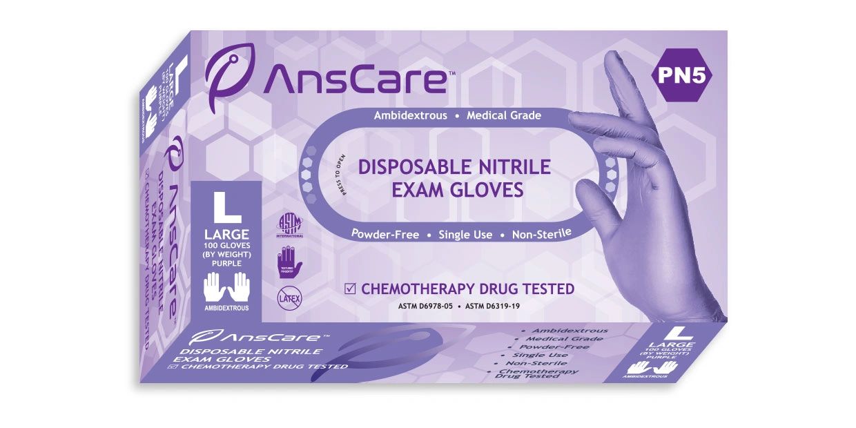 AnsCare Level 5 Nitrile Exam Gloves meet or exceed requirements for ASTM D6978-05 (2019) (Standard Practice for Assessment of Medical Gloves to Permeation by Chemotherapy Drugs).